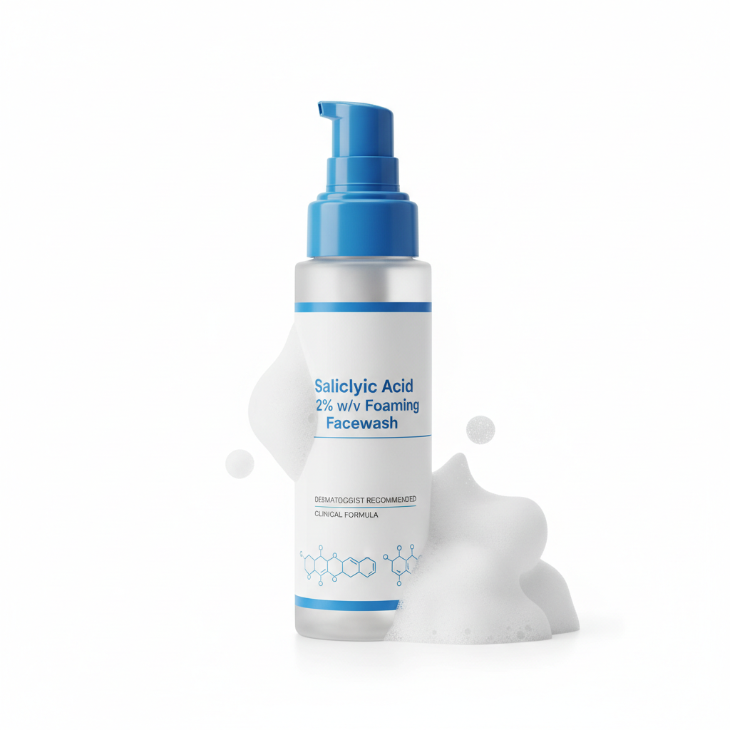 Salicylic Acid 2% w/v Foaming Facewash is a dermatologist-recommended cleanser formulated to help treat acne, control excess oil, and unclog pores. Powered with 2% Salicylic Acid, it penetrates deep into pores to remove dirt, excess sebum, and dead skin cells.